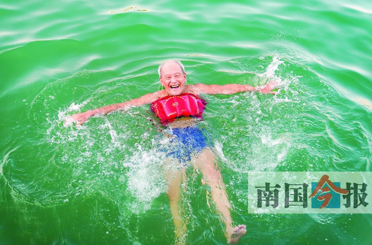 7月25日下午6時,柳州市西堤路人工沙灘處,91歲的茹芹老人像平時一樣到柳江河游泳。老人告訴記者,他愛好游泳很多年了,柳江河水清,游起來也帶勁。記者 顏篁 攝(廣西新聞網(wǎng)-南國今報)