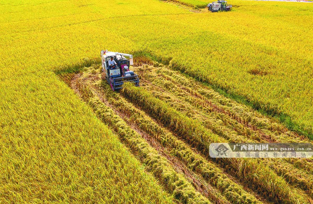 連日來,南寧市各地農(nóng)民趁著晴好天氣搶收稻谷。圖為在隆安縣雁江鎮(zhèn)的水稻種植基地里,金黃色的稻穗在收割機(jī)的運(yùn)作下變成整齊的稻茬。記者 沈程 覃海明 通訊員 盧虹靈 攝(廣西新聞網(wǎng)-廣西日報)