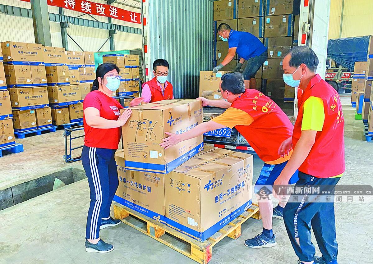 北海市自“7·12”疫情發(fā)生以來,全力做好物資調(diào)撥保障工作,24小時供給。圖為志愿者們在調(diào)運(yùn)疫情防控物資。記者 藍(lán)永前 通訊員 白工軒 攝(廣西新聞網(wǎng)-廣西日報)