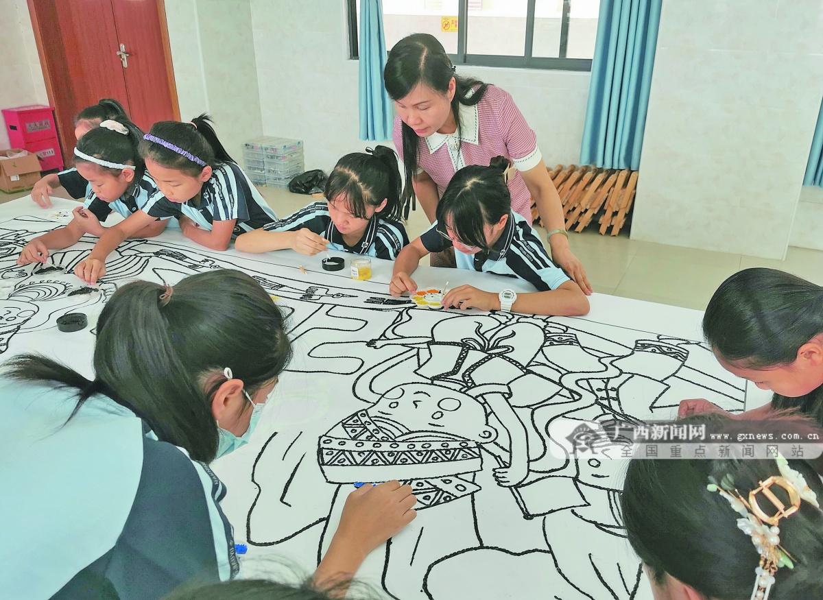 連日來,南寧市邕寧區(qū)清泉小學(xué)組織學(xué)生利用暑假制作一幅長2.4米、寬1.2米的大型點(diǎn)米畫。該畫作將參加第26屆南寧國際學(xué)生用品交易會暨2022中國·東盟(南寧)國際教育展覽會的相關(guān)展示交流活動。滕忠 攝(廣西新聞網(wǎng)-廣西日報)