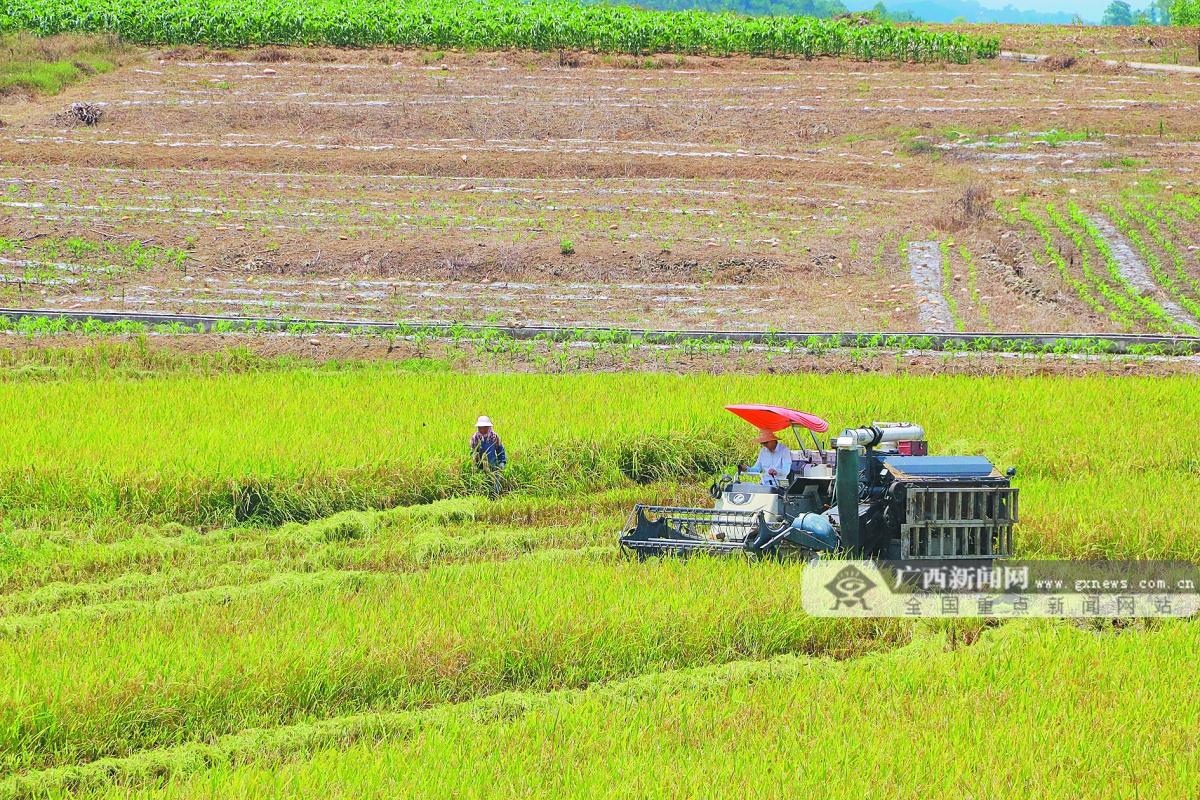 7月21日,在南寧市西鄉(xiāng)塘區(qū)石埠街道老口村那告坡,農(nóng)戶正抓緊收割早稻,糧食顆粒歸倉。朱小明 攝(廣西新聞網(wǎng)-廣西日報)