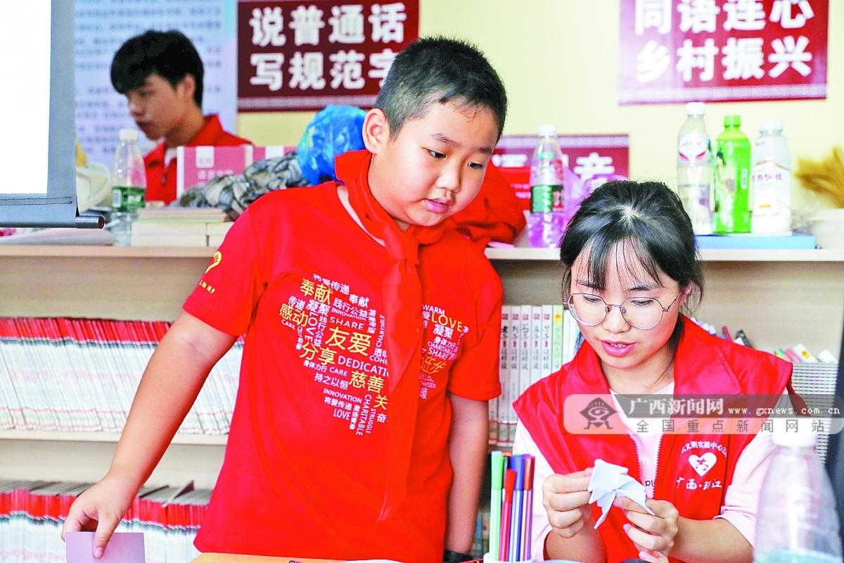 放暑假以來,河池市各縣區(qū)依托新時代文明實(shí)踐中心,組建包括學(xué)校教師、社會志愿團(tuán)體、志愿者、大學(xué)生和民間藝人等在內(nèi)的輔導(dǎo)員隊伍,利用現(xiàn)有場地設(shè)施條件,切實(shí)服務(wù)農(nóng)村未成年人,讓孩子們度過一個充實(shí)快樂的假期。圖為環(huán)江毛南家園城北移民安置區(qū)小朋友們在學(xué)習(xí)手工。記者 廖慶凌 通訊員 牙美瑩 梁紹恩 譚麗珊 攝(廣西新聞網(wǎng)-廣西日報)