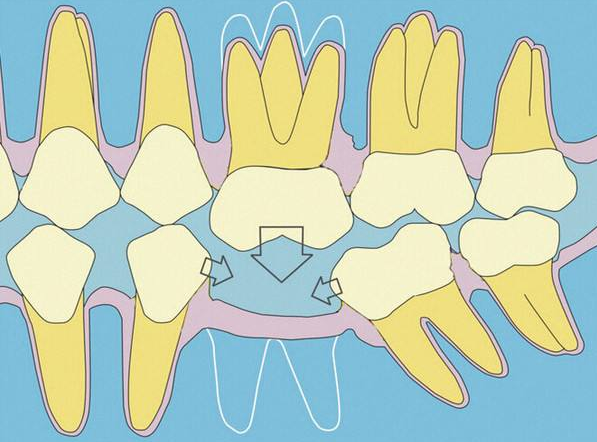 如果有一處的牙體缺失,其兩側(cè)的牙齒會(huì)因?yàn)槭ブ瘟α慷饾u向缺失處傾斜,這樣更容易造成牙體之間的縫隙加大,食物殘?jiān)苋菀浊度谘荔w之間的縫隙,不易清潔而且容易引發(fā)炎癥,對周邊的牙體和牙齦產(chǎn)生不利印象。
