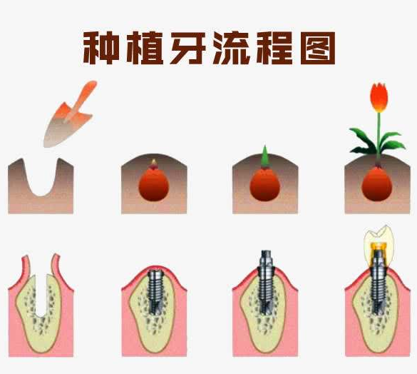 種植牙的四個(gè)步驟: