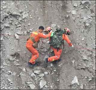 這是發(fā)生在四川甘孜州瀘定縣地震后震撼人心的一幕!冒著滾石掉落的危險,消防員背著不滿3歲的幼童,艱難地攀越垂直滑坡地帶,而腳下就是湍急的水流,讓人看了既感動又揪心?!爸挥嘘爢T先過,在兩道坎之間用繩索連起來,再組織隊伍慢慢順著繩索,踩出一條路來,后讓8名群眾過去?!彪S著路基逐漸被踩穩(wěn)踩實,8名群眾順著救援人員踩出的“小路”,攀爬通過這段塌方路段?;叵肫鹋逝肋^程,被困群眾杜彥庭抱著兒子一個勁地感謝消防隊員:“如果沒有你們,我們一家真的不知道怎么走過這一段。踩著你們的腳印走到這來,我們真的很心安!”