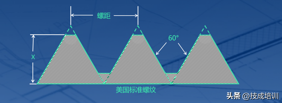 美標(biāo)螺紋牙頂和牙底皆為平面,強度和耐應(yīng)力性能較佳,螺紋角度60°,規(guī)格以每英寸幾牙表示,分為粗牙(NC),細牙(NF)和特細牙(NEF)3個級別。