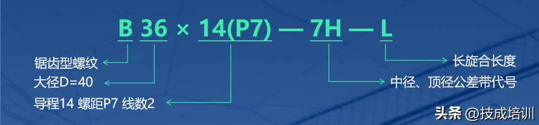 例2:B36x14(P7)-7H-L 是指哪類螺紋?