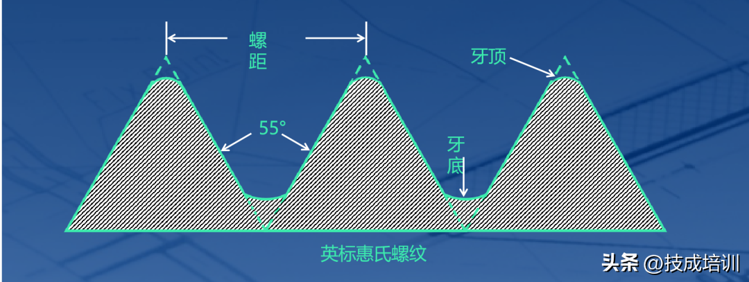 起源于英國,1841年英國公民約瑟夫·惠特沃斯發(fā)明這種螺紋,故此得名。這種螺紋的螺紋角度為55°,牙頂和牙底都是圓弧形,也被稱為B.S.W螺紋。
