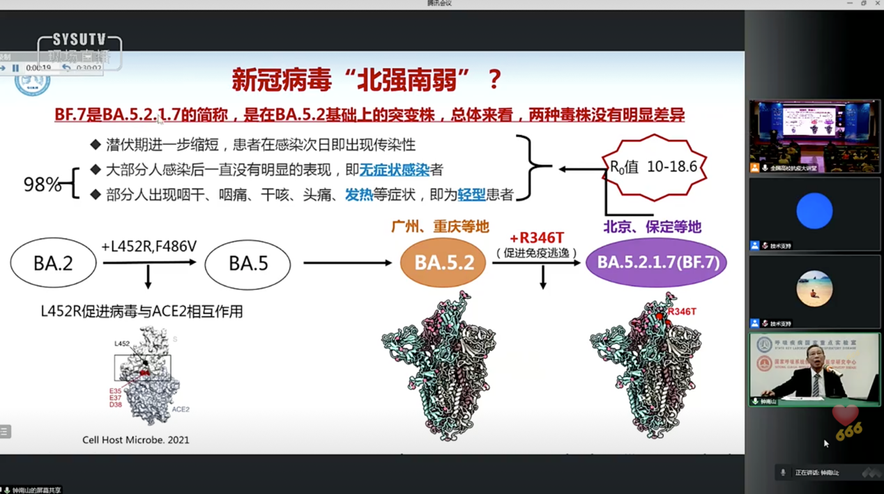 2022年12月15日,鐘南山在“全國高校抗疫大講堂”上的分享截圖。