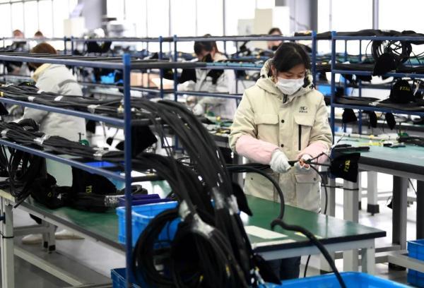 工作人員在汊河軌道交通裝備產(chǎn)業(yè)園的一家軌道交通裝備企業(yè)生產(chǎn)線上忙碌。劉軍喜攝(新華社)