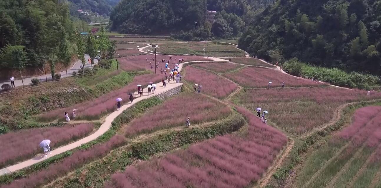 粉紅色的草兒,如同古代佳人般的發(fā)絲,慵懶般地鋪在地上,露珠怡然地沾在它的芽上,也不負(fù)這種植物的如詩(shī)般的名字——“粉黛亂子草”。粉黛亂子草高可達(dá)90厘米,花期可以從8月中旬至11月中旬,花穗云霧狀。2018年桐子坳景區(qū)為了豐富景區(qū)景點(diǎn),從外地引進(jìn)粉黛亂子草,每年吸引了名游客前來(lái)觀賞。