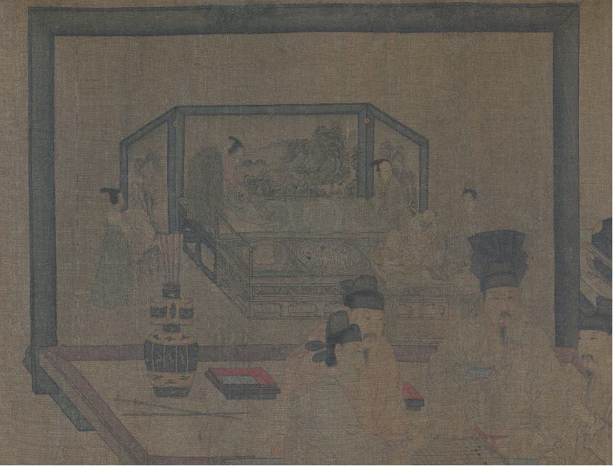 五代南唐,周文矩《重屏?xí)鍒D》卷(北宋摹本),故宮博物院藏。