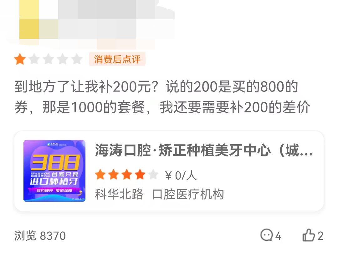 但種植牙更常見的套路是:利用低價吸引顧客,到店后再漲價的策略,直抵人性之根本,讓人欲罷不能。