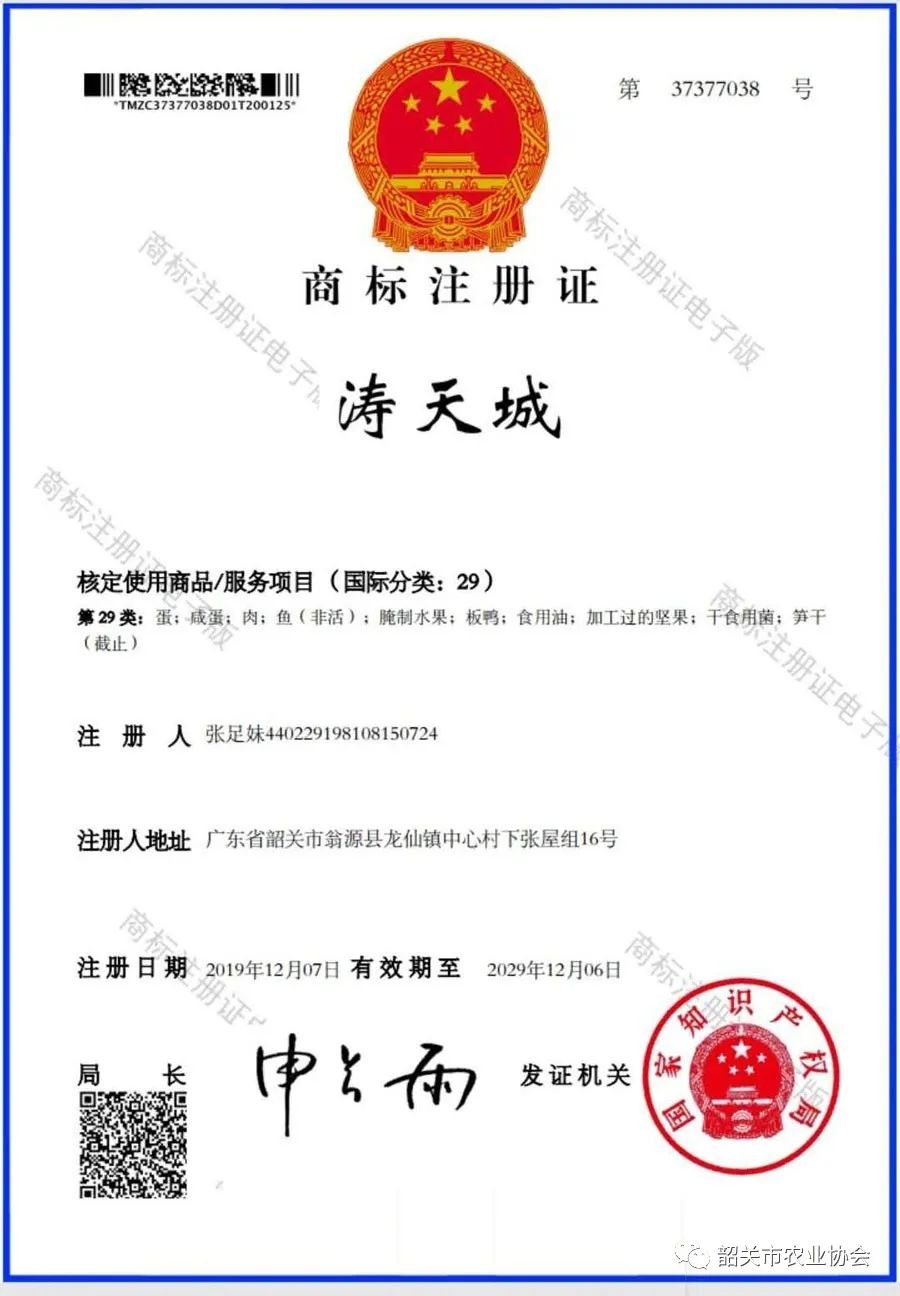 產(chǎn)品證書:“濤天城”商標(biāo)注冊證