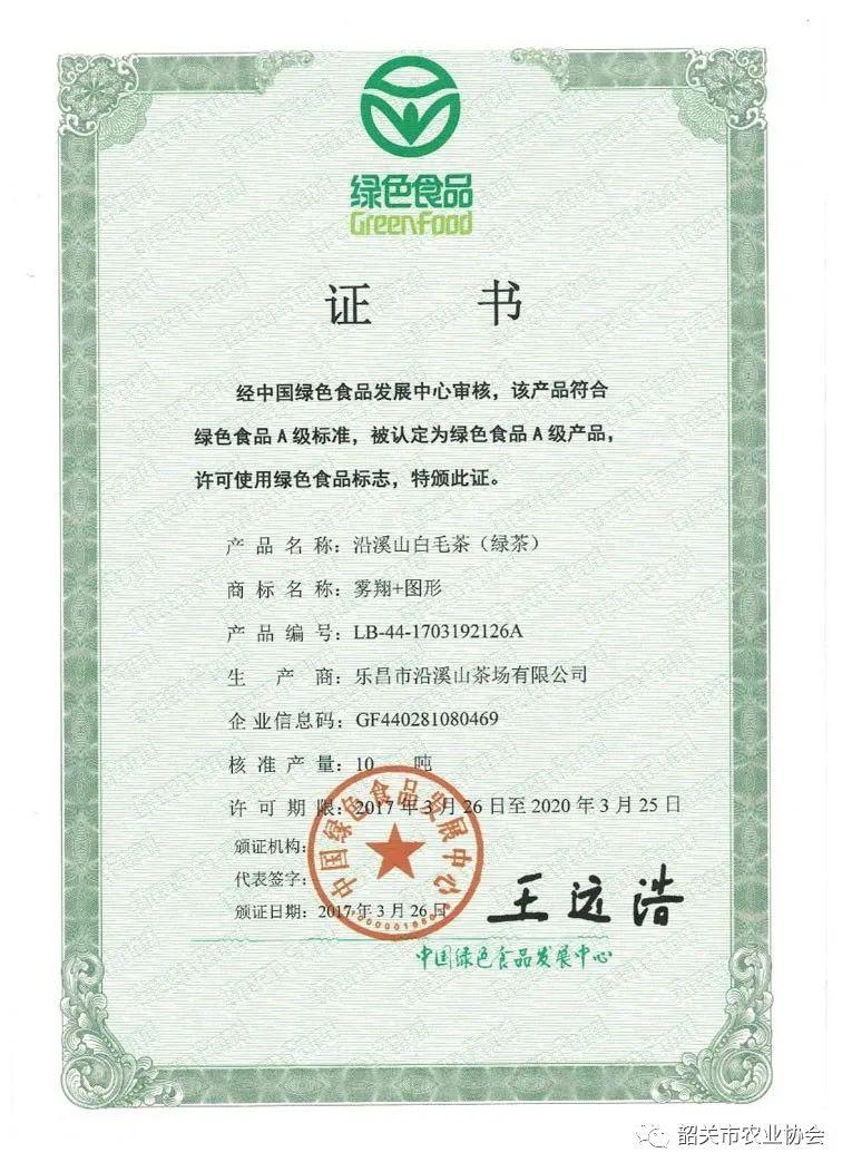 產(chǎn)品證書:地理標(biāo)志保護產(chǎn)品標(biāo)志、沿溪山白毛茶(綠茶)綠色食品證書