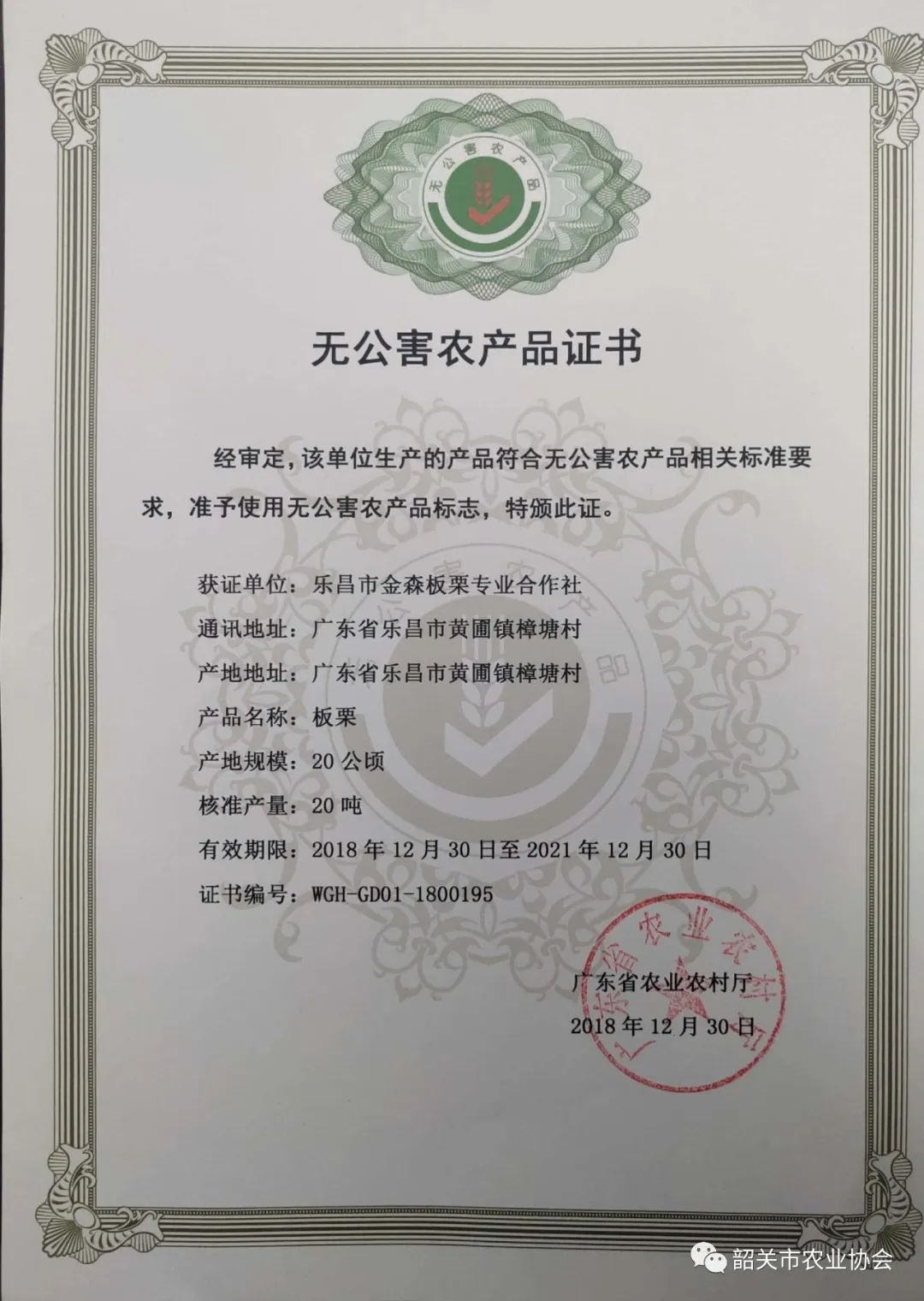 產(chǎn)品證書:無公害農(nóng)產(chǎn)品證書、廣東省產(chǎn)品證書
