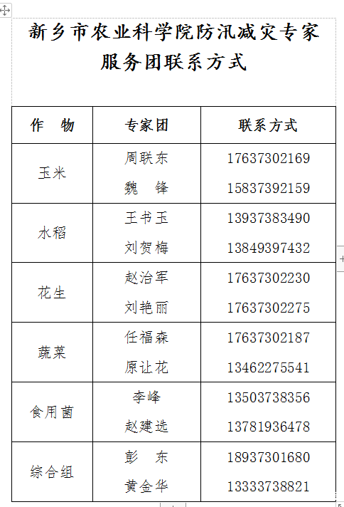 附件:新鄉(xiāng)市農(nóng)業(yè)科學院防汛減災(zāi)專家服務(wù)團聯(lián)系方式
