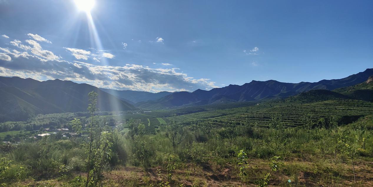 7月末,正是蘋(píng)果花芽分化的關(guān)鍵時(shí)期,這時(shí)花芽分化的情況,決定著明年蘋(píng)果的成果質(zhì)量。在小城子鎮(zhèn)八家村的小城子鎮(zhèn)萬(wàn)畝林果產(chǎn)業(yè)園觀景臺(tái)上,能看到一棵棵蘋(píng)果樹(shù)一圈圈圍住一座座小山。