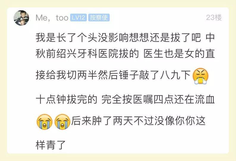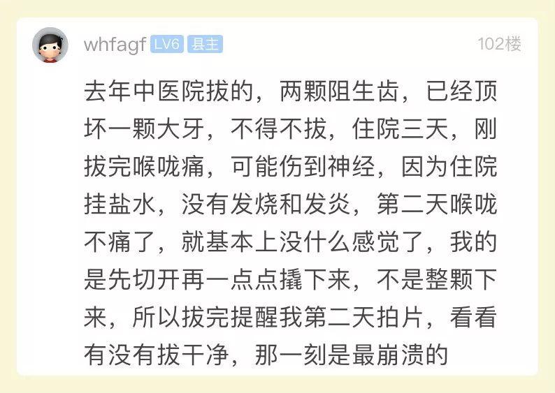 我就是因為見周邊人拔了好像沒事,也看看帖子,感覺不是很難。然而,我周三拔了一顆,簡直受大罪!