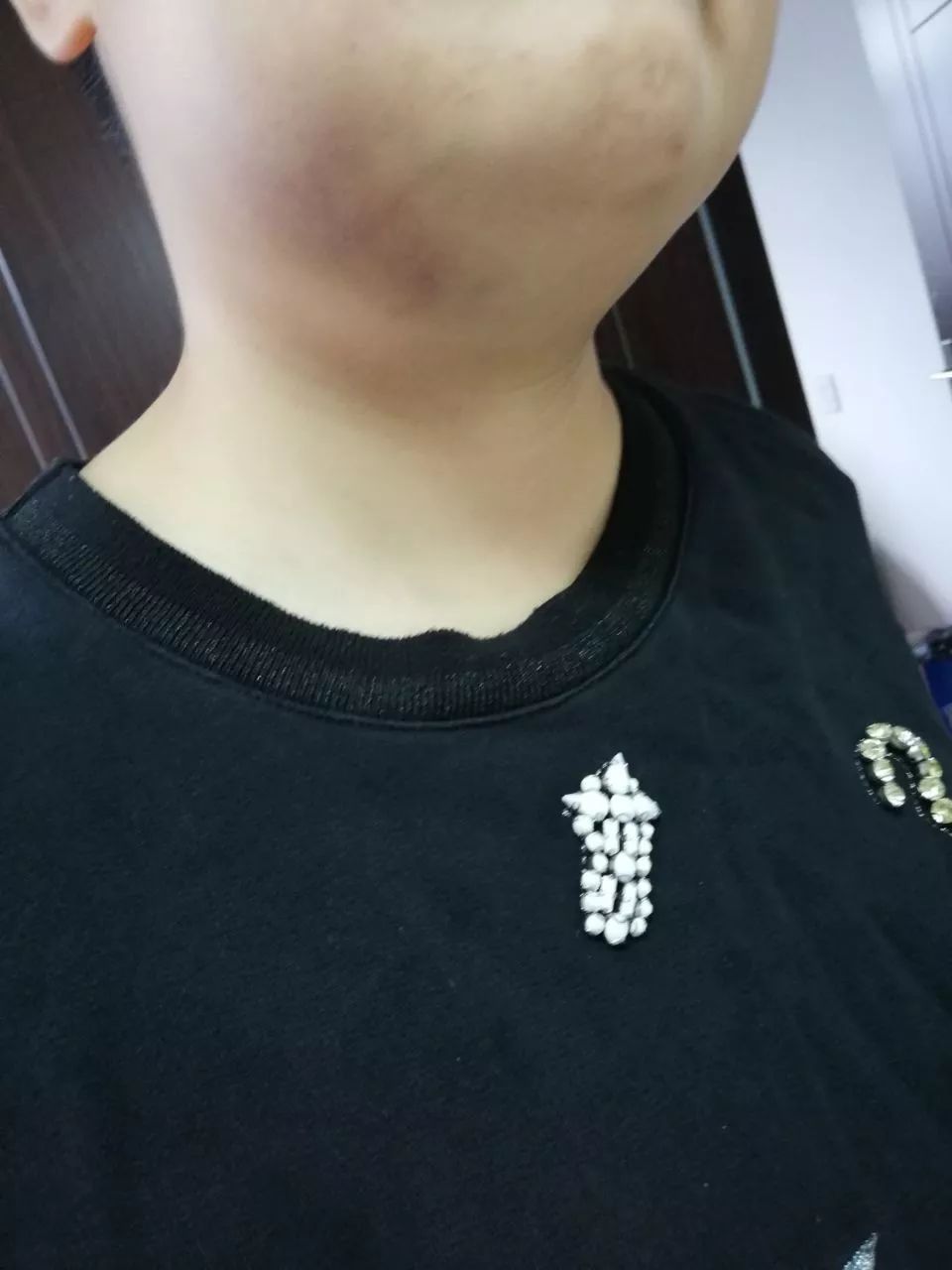 后附上今天下午拍的圖三:是我今天拍的下巴,腫還沒消,這下巴烏青的……前兩天臉歪嘴歪的都張不開。