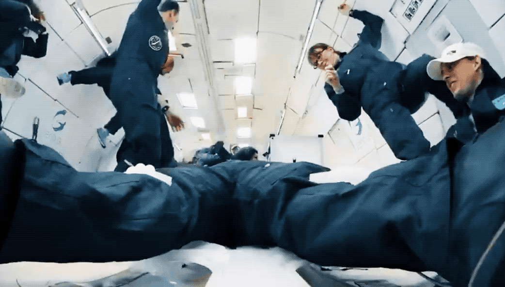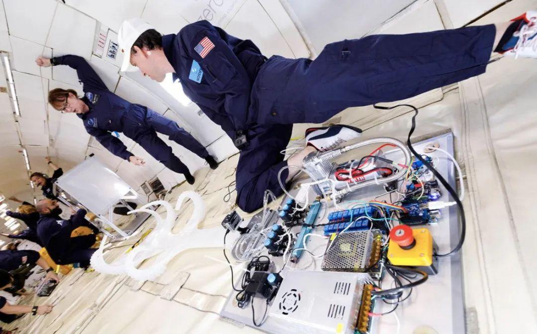 第一個項目,她們邀請了25位不同學(xué)科的研究員,在模擬零重力的飛機里測試他們對在失重環(huán)境下生存的想象。