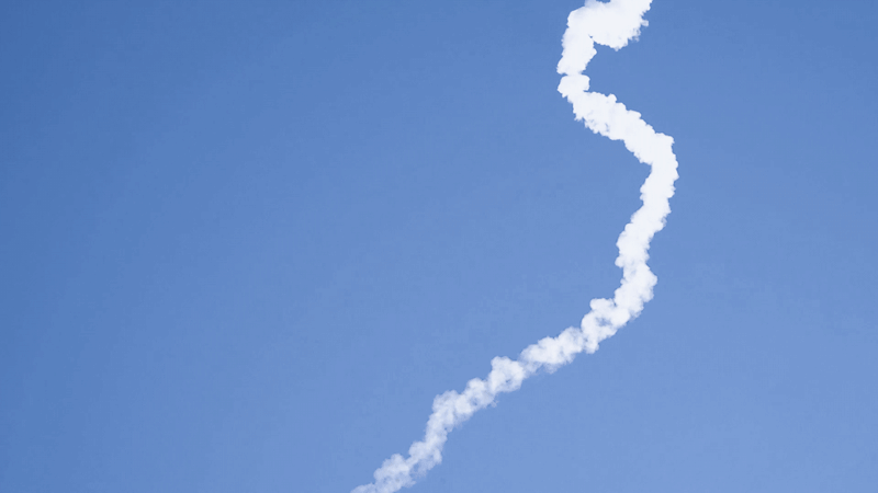 宇宙探索計劃的作品乘著火箭進入太空,留下一道彎彎曲曲的痕跡