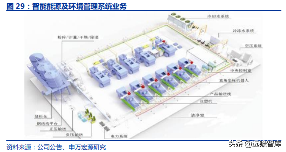 公司具備平臺(tái)化優(yōu)勢(shì),可深度挖掘頭部客戶需求,可延伸空間大。智能能源及環(huán)境管理系統(tǒng)業(yè)務(wù)作為業(yè)務(wù)前端,在下游客戶在開(kāi)始投產(chǎn)建廠時(shí)就開(kāi)始接洽,可以充分了解客戶生產(chǎn)制造需求,并且與客戶形成相互信任的合作關(guān)系,為公司進(jìn)一步導(dǎo)入自動(dòng)化業(yè)務(wù)奠定基礎(chǔ)。