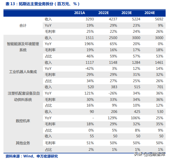 智能能源及環(huán)境管理業(yè)務(wù)處于制造業(yè)生產(chǎn)前端,可以幫助拓斯達(dá)了解下游客戶的生產(chǎn)工藝和規(guī)劃,與客戶建立密切的聯(lián)系,有利于公司對(duì)客戶銷(xiāo)售工業(yè)機(jī)器人、注塑機(jī)、數(shù)控機(jī)床等自動(dòng)化設(shè)備和自動(dòng)化解決方案,形成協(xié)同應(yīng)。