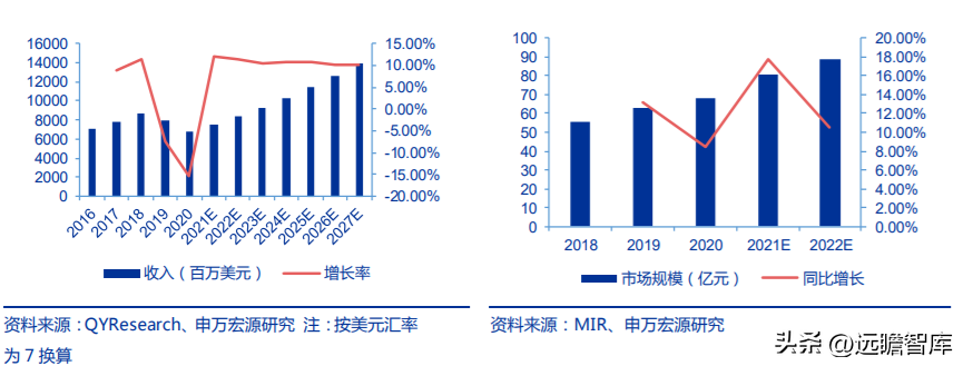 根據(jù) QYResearch 數(shù)據(jù),2020 年五軸數(shù)控機(jī)床市場(chǎng)銷(xiāo)售額為67.5 億美元(折合人民幣485 億元),預(yù)計(jì)2027 年將達(dá)到138 億美元,2021-2027 年 CAGR 為 10.58%。根據(jù) MIR 數(shù)據(jù),2020 年中國(guó)五軸數(shù)控機(jī)床市場(chǎng)規(guī)模為 68.2 億元。
