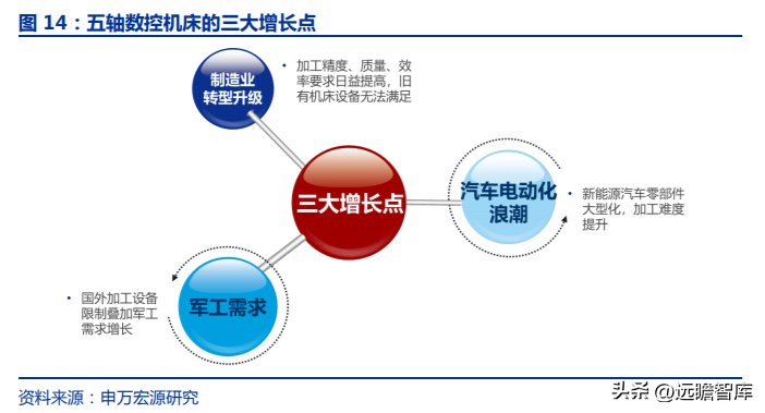 我國(guó)五軸數(shù)控機(jī)床行業(yè)面臨制造業(yè)轉(zhuǎn)型升級(jí)、軍工需求旺盛和新能源汽車(chē)行業(yè)爆發(fā)等重大機(jī)遇,行業(yè)實(shí)現(xiàn)快速發(fā)展。