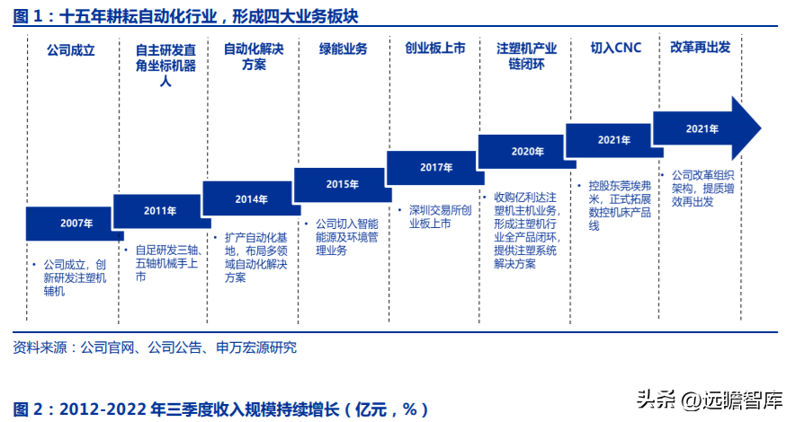 1. 自動(dòng)化設(shè)備平臺(tái)型企業(yè),四類(lèi)產(chǎn)品協(xié)同共進(jìn)1.1 注塑機(jī)輔機(jī)起家,延伸至自動(dòng)化多線業(yè)務(wù)