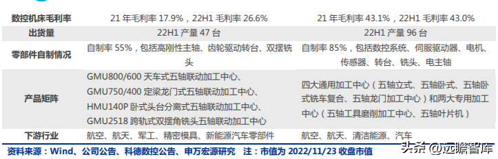 2022 年,公司增設(shè)華東生產(chǎn)基地,主要用于生產(chǎn) HMU-140P 及 GMU-2518 等專(zhuān)用大機(jī)型,用于航空航天發(fā)動(dòng)機(jī)鈦合金、高溫合金加工以及精密大型汽車(chē)模具加工等。2022 年上半年出貨量 47 臺(tái)。