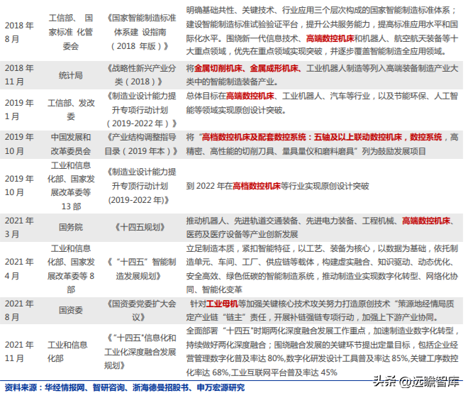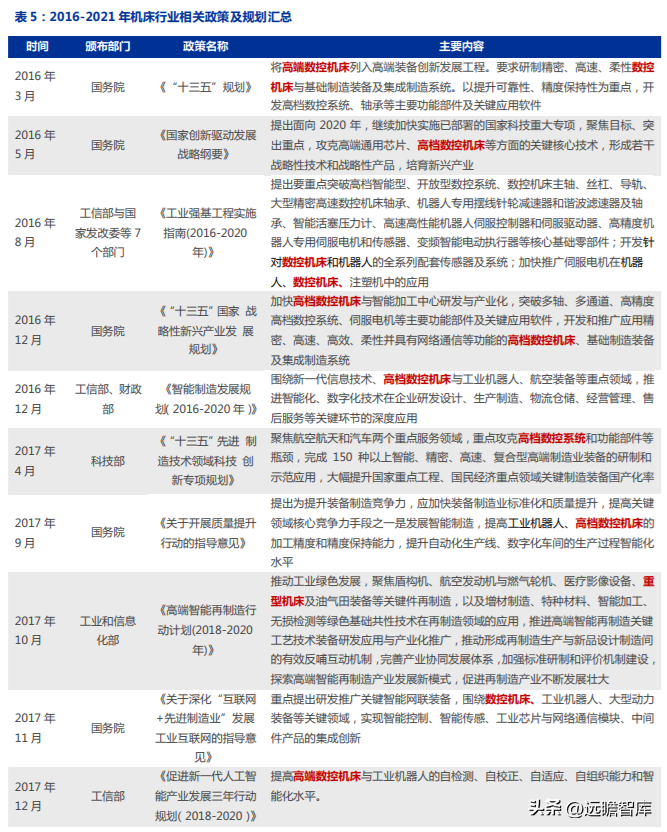 從角度出發(fā),實(shí)現(xiàn)高端機(jī)床的自主可控是中國(guó)機(jī)床行業(yè)發(fā)展的必然要求。從 2016 年以來(lái),持續(xù)出臺(tái)相關(guān)政策加快機(jī)床全產(chǎn)業(yè)鏈發(fā)展。2016 年 3 月,“十三五”規(guī)劃將高端數(shù)控機(jī)床列入高端裝備創(chuàng)新發(fā)展工程,而后中央及地方密集出臺(tái)相關(guān)政策。政策覆蓋全產(chǎn)業(yè)鏈環(huán)節(jié)、零部件性能、產(chǎn)業(yè)目標(biāo)等全方面,助力我國(guó)數(shù)控機(jī)床全產(chǎn)業(yè)鏈快速崛起,逐漸縮短與日德等發(fā)達(dá)之間的差距。
