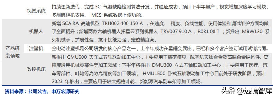 2021 年公司研發(fā)費(fèi)用 1.42 億元,占收入比重 4.3%,研發(fā)人員 985 人,占總?cè)藬?shù)的 34%、底層技術(shù)儲(chǔ)備研發(fā)圍繞機(jī)器人、數(shù)控機(jī)床和注塑機(jī),關(guān)鍵攻克底層零部件,包括機(jī)器人控制器、注塑機(jī)控制器、五合一伺服驅(qū)動(dòng)器、電液伺服驅(qū)動(dòng)器、面向數(shù)控機(jī)床、機(jī)器人及工業(yè)自動(dòng)化應(yīng)用的高性能、軸數(shù)可靈活組裝的模塊化驅(qū)動(dòng)器、視覺(jué)定位算法、視覺(jué)相關(guān)性匹配、視覺(jué)平臺(tái)等。