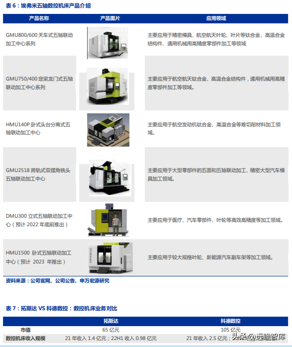 目前多款機(jī)床產(chǎn)品處于研發(fā)階段,根據(jù)公司 2022 年半年報(bào),2022 年下半年將推出 DMU300 立式五軸聯(lián)動(dòng)加工中心,主要應(yīng)用于醫(yī)療、汽車(chē)零部件、葉輪等高高精度等加工領(lǐng)域;預(yù)計(jì) 2023 年推出 HMU1500 臥式五軸聯(lián)動(dòng)加工中心,主要應(yīng)用于較大規(guī)格葉輪、新能源汽車(chē)副車(chē)架等加工領(lǐng)域。