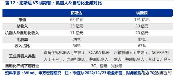 2)匯川技術(shù)為工業(yè)自動(dòng)化綜合廠商,覆蓋工業(yè)機(jī)器人及自動(dòng)化,SCARA 機(jī)器人出貨量位居第一,公司的 SCARA 機(jī)器人出貨量快速增長(zhǎng),因此匯川技術(shù)與拓斯達(dá)具備可比性;
