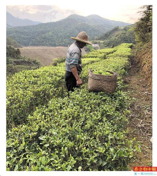 一條溪流從山谷穿過,工人們正在對面山上采茶。朋伯帶領南都記者驅(qū)車爬上山腰,然后下車參觀茶園。