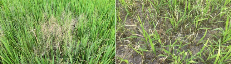 今年水稻田雜草是嚴(yán)重的一年,同時(shí)也是除草劑藥害嚴(yán)重的一年。6-7月干旱少雨,雜草瘋狂生長,今年幾乎所有的農(nóng)資店老板和水稻種植戶都說今年稻田的雜草難除,往年水稻只需要一次除草就除得干凈,而今年有的種植戶打了三次除草劑,田間雜草還有很多。直播稻受到除草劑的影響,造成葉片發(fā)黃、生長緩慢、僵苗和雜交稻移栽后緩苗時(shí)間長、不易長新根等問題。