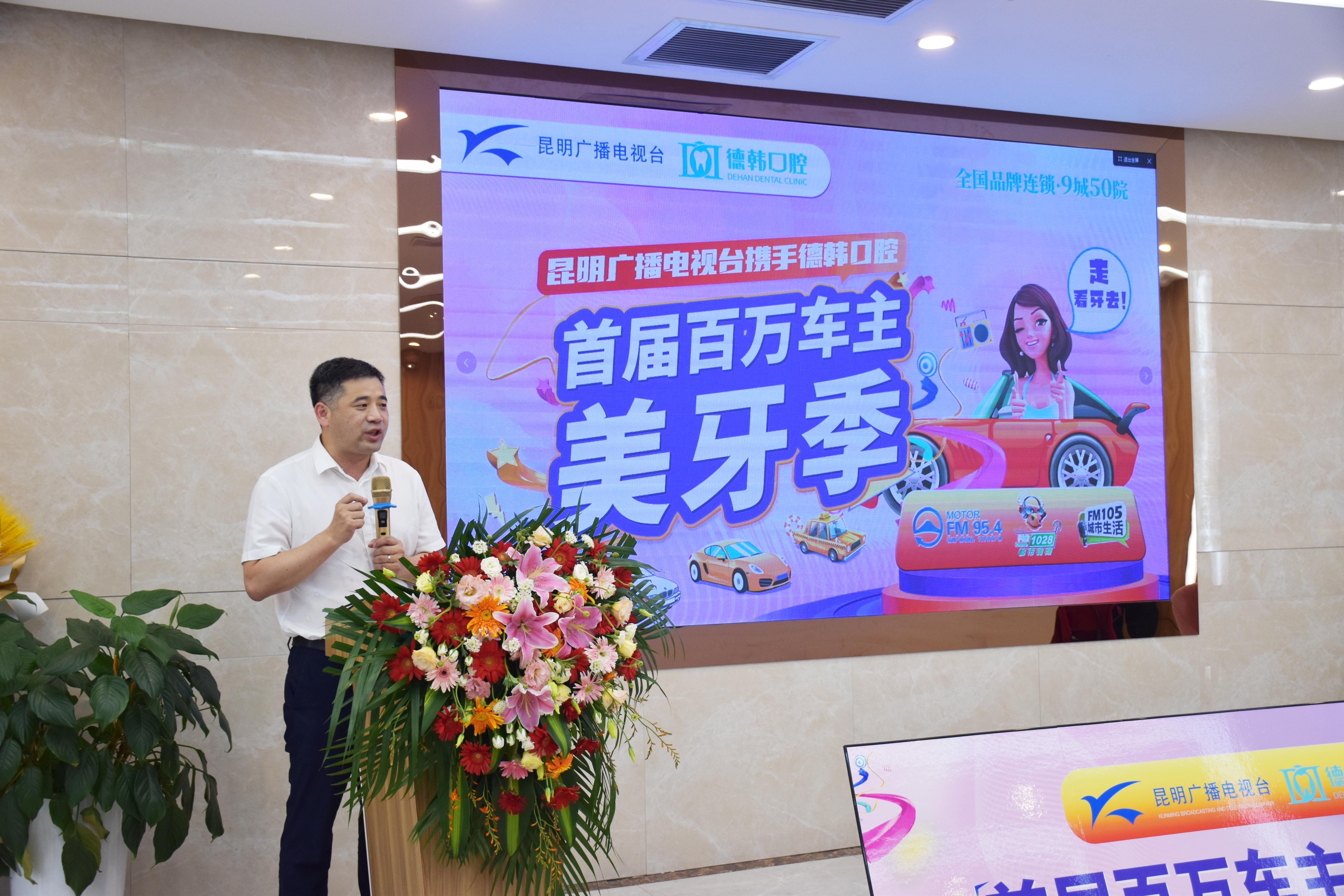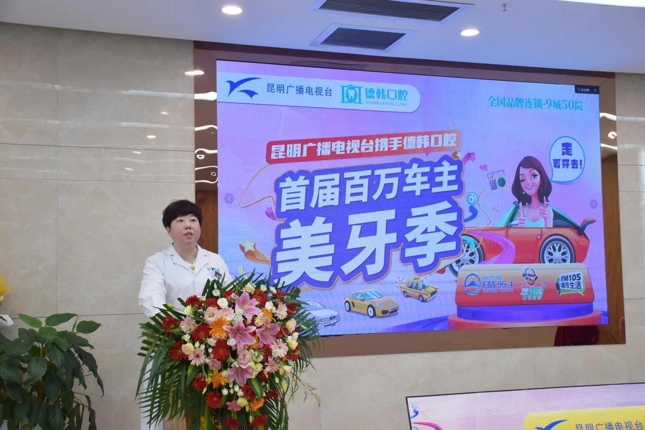 7月17日,昆明廣播電視臺(tái)“首屆百萬(wàn)車主美牙季”啟動(dòng)儀式暨新聞發(fā)布會(huì)在位于青年路金鷹購(gòu)物商場(chǎng)的4樓德韓口腔舉行。昆明廣播電視臺(tái)臺(tái)務(wù)委員、全媒體廣播中心主任杜小兵表示,口腔健康是全身健康的重要組成部分,是反映一個(gè)和地區(qū)居民身心健康,文明水平的重要標(biāo)志,作為媒體,有責(zé)任對(duì)群眾的健康作出積極的引導(dǎo),也有能力整合資源,為廣大聽(tīng)眾提供有品質(zhì)的醫(yī)療資源。