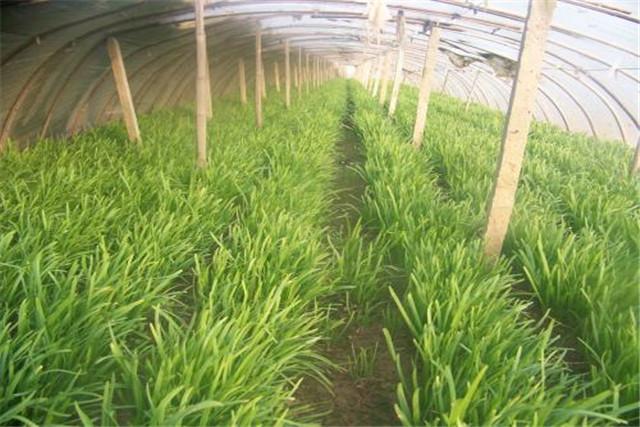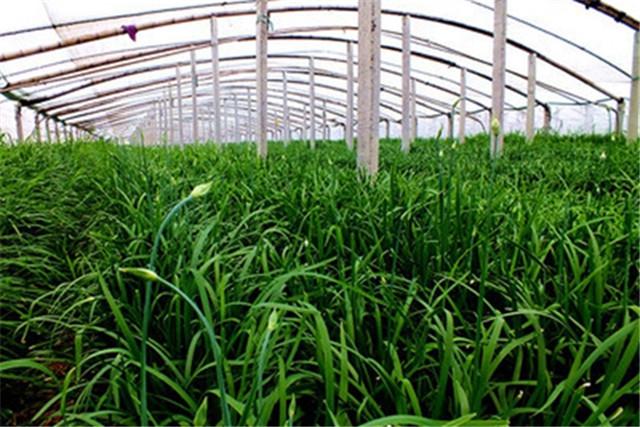 冬季棚栽的韭菜,蓋膜前適時收割或清除已枯韭菜地上部分,然后再用50%辛硫磷乳油1 000倍稀釋液灌根。大棚蓋膜一般在10月下旬進(jìn)行。棚內(nèi)溫度白天20~25 ℃,夜間8~12 ℃。從老韭菜處理后到收割需25 d左右。