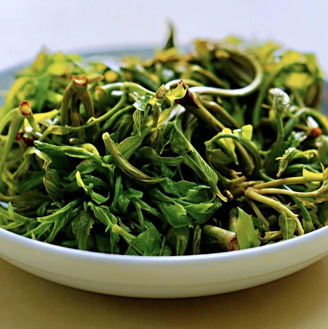 春日里,若是有一場(chǎng)綿綿的雨兒撒過(guò),那紫色的香椿芽?jī)荷熘峙值尿榍氖謨?,招呼著這時(shí)節(jié)里的人們,“雨前椿芽嫩無(wú)比,雨后椿芽生木體”。吃著早已吃膩的白菜、蘿卜,吃著那些雖然應(yīng)時(shí)卻非應(yīng)季蔬菜,人們渴望著嘗到新鮮的美食佳蔬。摘一把嫩嫩的香椿芽?jī)海恍栌盟疀_過(guò),用刀斬碎,打三幾只雞蛋,放上少許鹽攪拌均勻。油鍋燒熱,倒入合著雞蛋糊兒的香椿,“哧哧”的聲音響過(guò),誘人的香氣鉆入你的鼻孔。一盤(pán)香椿煎蛋大功告成。雞蛋的滑爽裹著香椿的芳香,在你的口腔里漫溢開(kāi)來(lái),讓你的精神驟然清朗,似乎體味了這人生,這季節(jié)的美妙!以香椿為主要食材的菜品多達(dá)幾十種,食法多樣,腌制、涼拌、煎炒、干炸等食法均可。