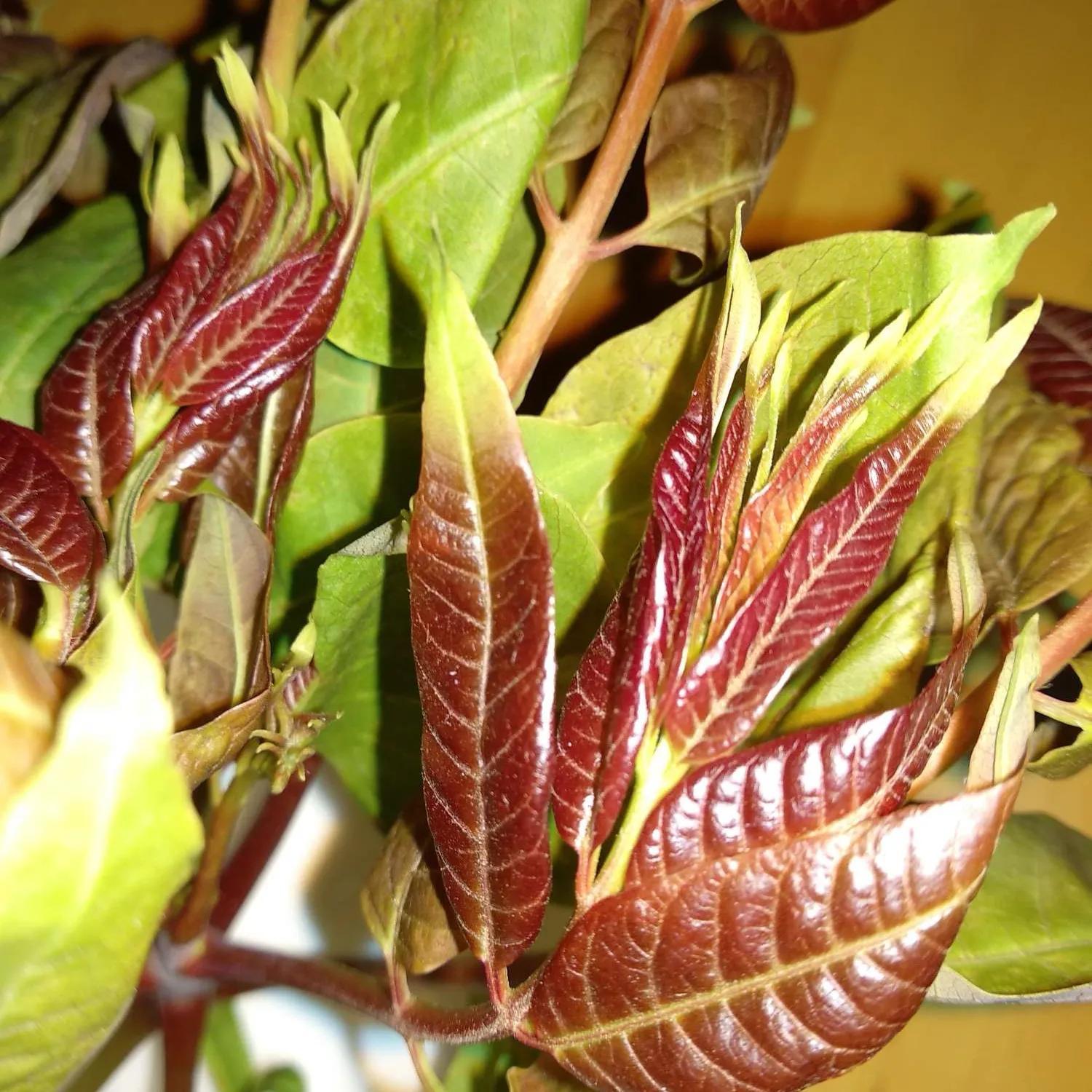 香椿,廣布中國(guó)南北各地,以河南信陽(yáng)種植為馳名。食用香椿一般有紫香椿和綠香椿兩種,紫色香椿氣味尤甚。
