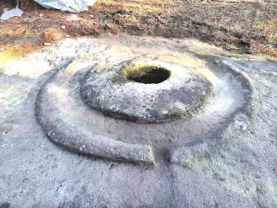 遠(yuǎn)古巖石上磨刻的圓形爻窩記事符號