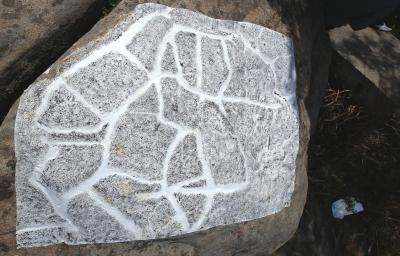 山中還發(fā)現(xiàn)有虎、駱駝、大象等被損巨石圖騰。這些動(dòng)物圖騰上均有人工磨刻的各種排列組合的圓形爻窩,似乎是圖騰的說明書。