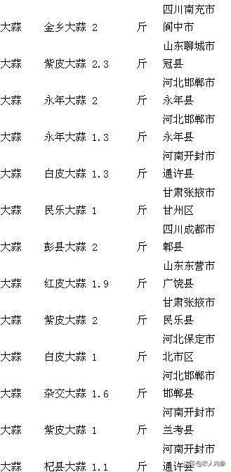 2018年12月12日大蒜產(chǎn)區(qū)價格匯總