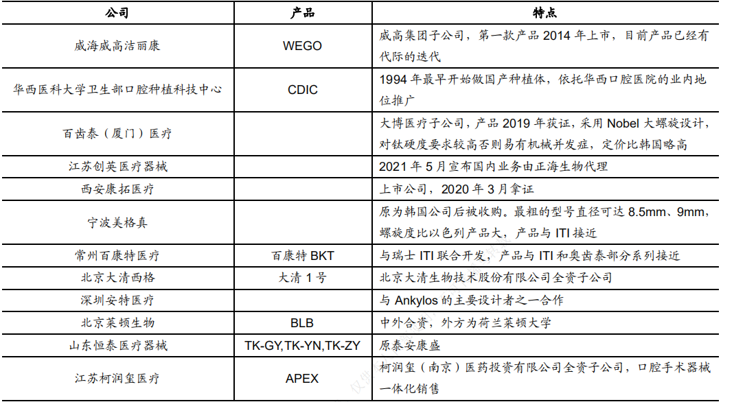 國產(chǎn)主要種植體企業(yè) 來源:各公司官網(wǎng),國海證券研究所