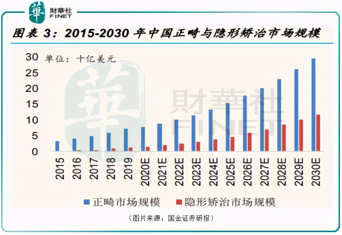 隱形矯治市場(chǎng)規(guī)模由2015年的2億美元增至2019年的14億美元,復(fù)合年增長率為56%,并有望于2030年達(dá)到119億美元,2019年至2030年的復(fù)合年增長率預(yù)計(jì)為21.5%。