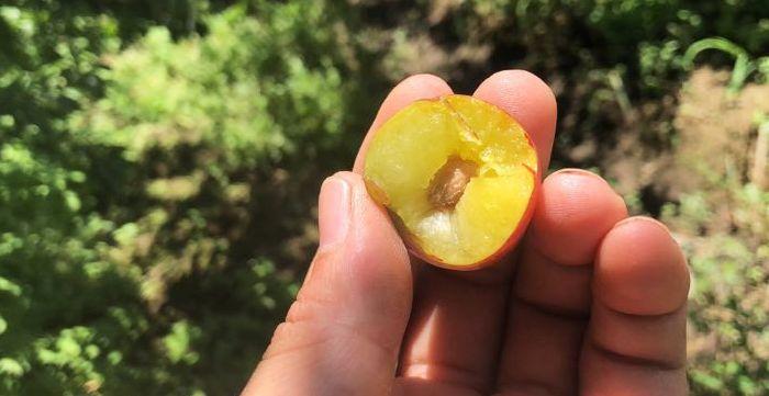 沒有經(jīng)過農(nóng)藥噴灑,原生態(tài)的茵紅李摘下隨手擦擦就能直接往嘴里送,是真正的“才下枝頭,卻上舌頭,鮮掉眉頭!”
