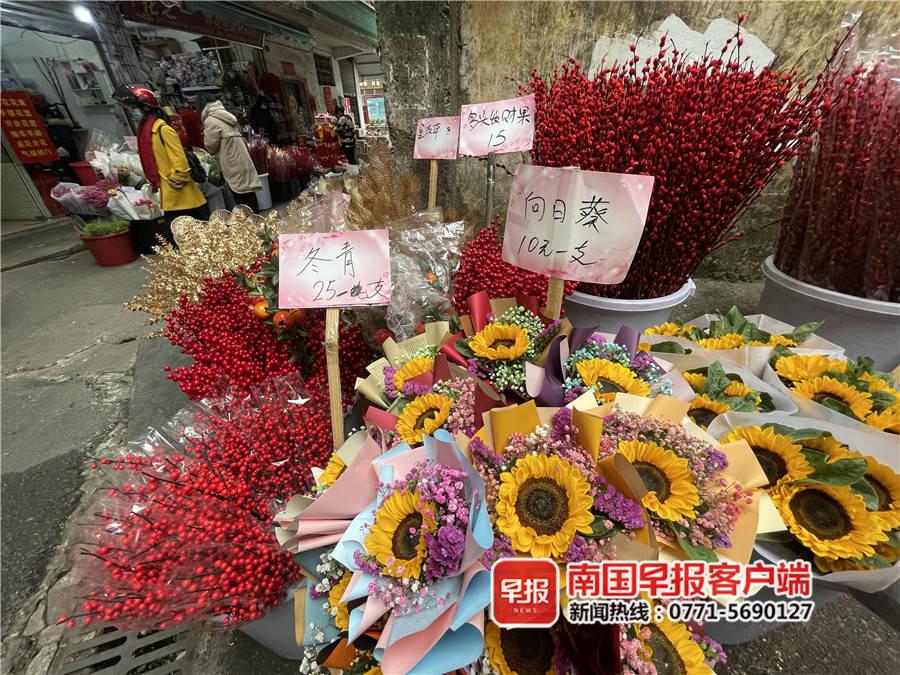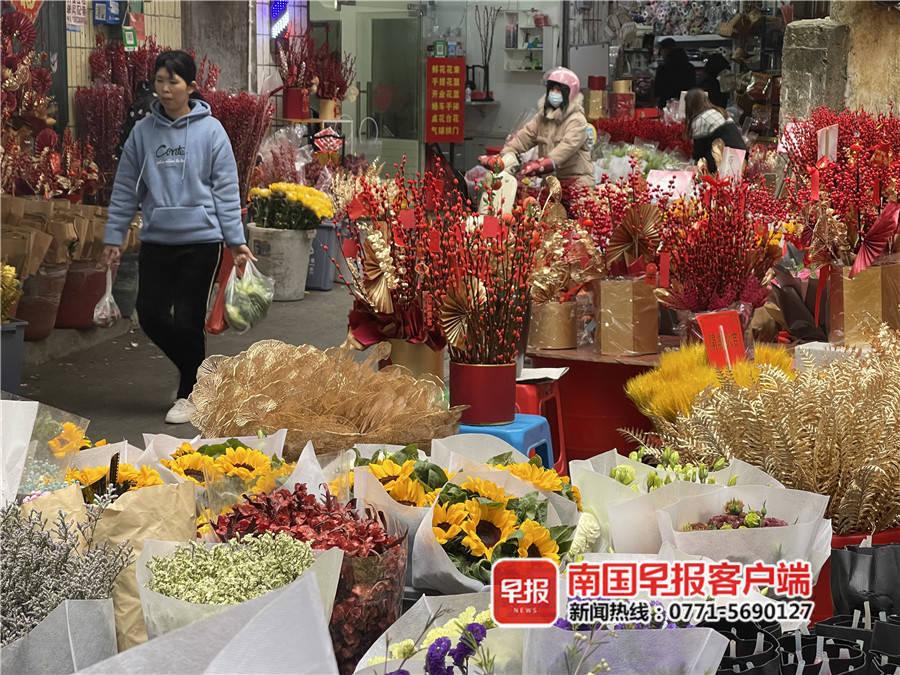 1月15日,南寧市七星路一巷,擺滿了各色鮮切花,向日葵、洋甘菊、銀柳、百合等上百個(gè)品種供人們選購。在小巷里穿梭的買花人雖然都戴著口罩,眼里卻掩蓋不住喜悅。
