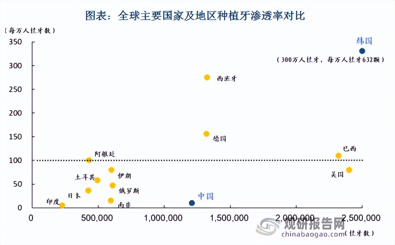 對(duì)標(biāo)海外,韓國(guó)的種植牙因?yàn)榧{入醫(yī)保滲透率上升迅猛,達(dá)到每萬(wàn)人632顆,為高。滲透率達(dá)到每萬(wàn)人100顆以上的包括西班牙、德國(guó)、巴西、阿根廷,美國(guó)為接近100萬(wàn)。相比之下我國(guó)種植牙滲透率很低,核心要素是支付可及性低。對(duì)比各國(guó)種植牙價(jià)格/GDP比例,韓國(guó)種植牙價(jià)格/GDP比例低,不到5%,考慮到醫(yī)保覆蓋,韓國(guó)個(gè)人實(shí)際支付比例更低;其次意大利、美國(guó)、英國(guó)、西班牙,以及新興市場(chǎng)土耳其、巴西和墨西哥等也較低,相應(yīng)的這些的種植牙滲透率較高。而我國(guó)的種植牙收費(fèi)與GDP比例接近20%,處于較高水平。今年以來(lái)國(guó)內(nèi)多地醫(yī)保局發(fā)布通知調(diào)查種植牙費(fèi)用,種植牙集采或加速推進(jìn),種植牙數(shù)量有望呈現(xiàn)爆發(fā)式增長(zhǎng)。